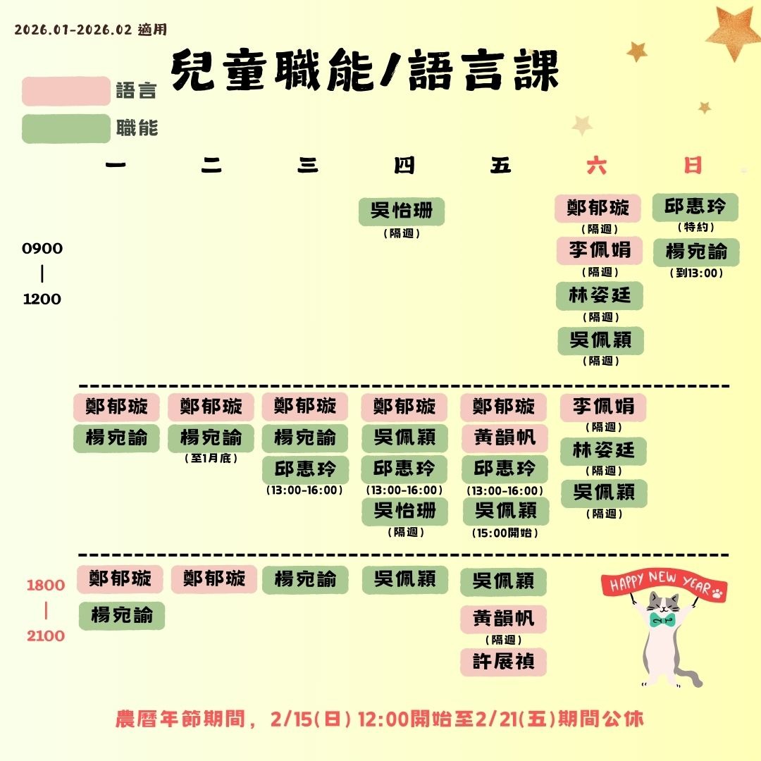 2026 1月份-2026 2月份職能&語言門診表