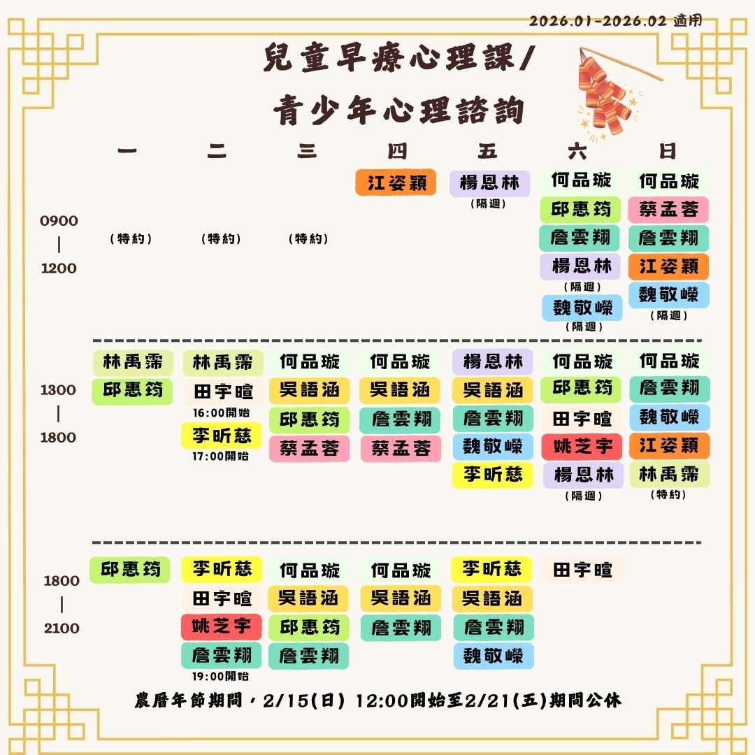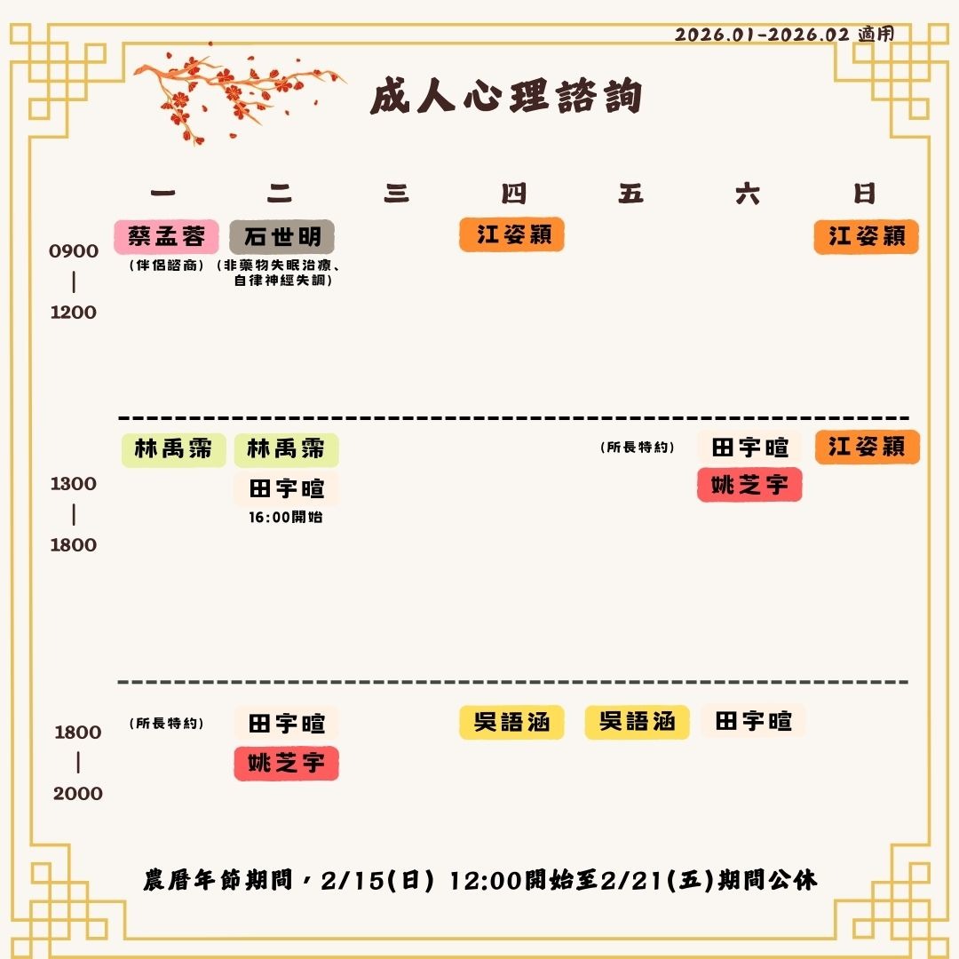 2026 1月份-2026 2月份心理門診表